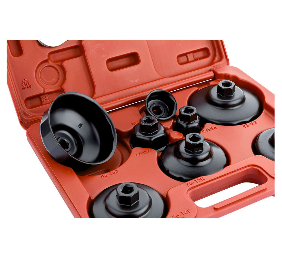Zestaw nasadek do wymiany metalowych filtrów oleju w samochodach osobowych i dostawczych firmy BOXO. Kompletny zestaw przeznaczony przede wszystkim dla warsztatów samochodowych i punktów wymiany oleju.